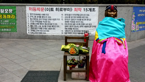 | ▲ 일본대사관 앞의 "소녀상" | ||