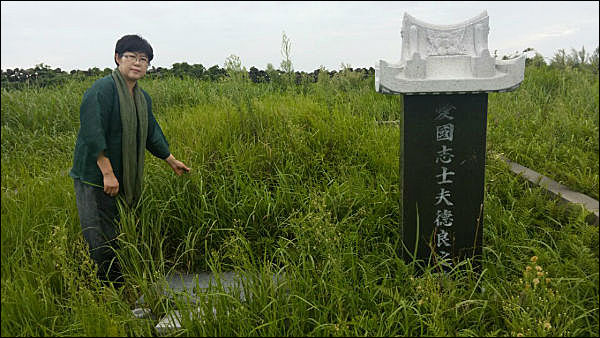 | ▲ 부덕량 애국지사 무덤 앞에선 기자 |