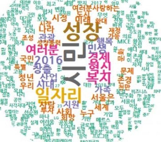 아울러, 서울시는 박원순 시장의 '2016년 신년사'에서 자주 언급된 주요 키워드를 분석해서 가장 많이 언급된 단어를 시각적으로 돋보이게 보여주는 '워드클라우드'를 제작해 정보소통광장(http://opengov.seoul.go.kr/issue/7147724)에 공개했다.