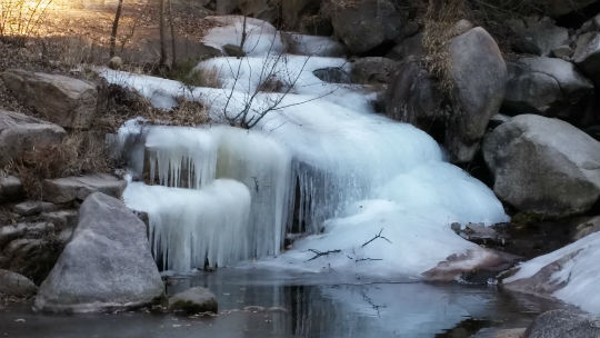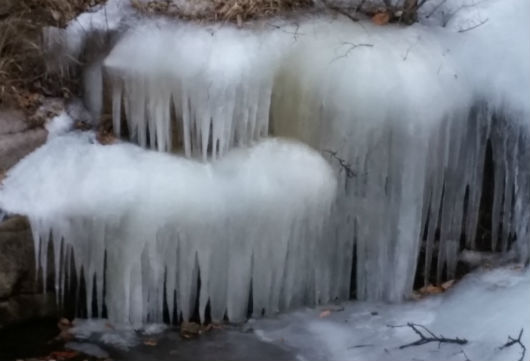 | ▲ 계곡물이 얼어 주렁주렁 고드름이 달려있다 | ||