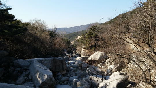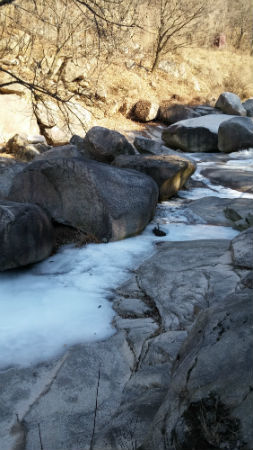 | ▲ 계곡엔 흘러내린 물이 얼어 두꺼운 고드름이 달려있다 | ||