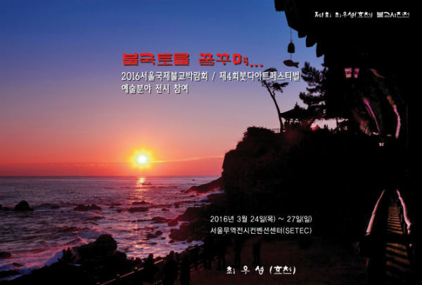 이번 박람회 주제는 ‘마음이 쉬는 공간’으로 모두 3개 분야의 전시 공간 중 하나는 ‘붓다아트페스티벌’로 열린다. 이번 ‘2016서울국제불교박람회’와 ‘제4회붓다아트페스티벌’ 행사에서 ‘예술분야’에 참여하는 최우성 작가의 불교사진 작품 전시회도 눈에 띄는 볼거리다.