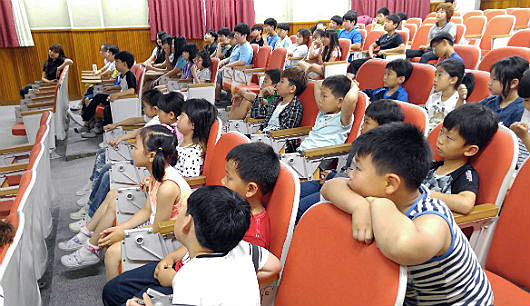 | ▲ 눈과 귀를 한데 모으고 열심히 강연을 듣는 군남초 전교생 | ||