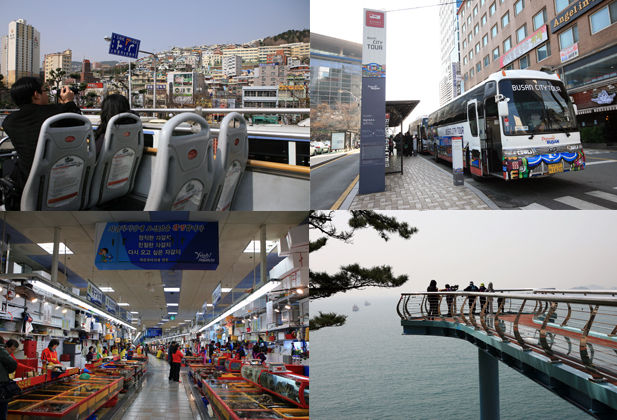 이들을 효율적으로 돌아보려면 부산 여행의 충실한 안내자 시티투어 버스를 이용하는 것이 편하다. 코스도 다양하다. 월요일을 제외하고 매일 오전 9시 30분부터 오후 5시까지 30분 간격으로 태종대 방향과 해운대 방향을 오가는 순환형 시티투어, 반나절 테마 여행으로 운행하는 역사문화탐방 코스, 해동용궁사 코스, 을숙도 자연생태 코스, 야경 코스 등이 준비되었다. 반나절 테마 여행 코스에 참가하려면 반드시 예약해야 한다.