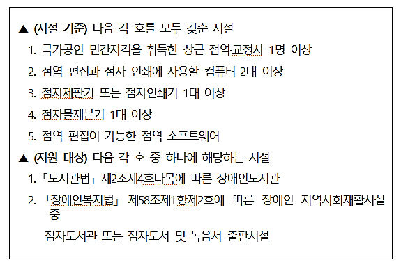 국가와 지방자치단체에서 지원받을 수 있는 점자출판 시설 기준 마련