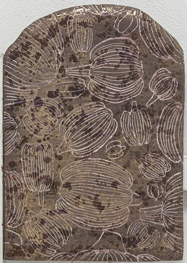 또한 땅속에 뿌리를 내려 자연의 영양분으로 결실을 맺은 호박은 어머니가 나의 생명력을 탄생시킨 자연의 섭리를 표현하며, 호박꼭지는 어머니와 나를 연결하는 탯줄로 연결 시켰다. 자연과 사람의 탄생을 동일시하고 순수한 본질을 잃지 않으려는 작가의 진심이 묻어난다. 손끝에서 느껴지는 흙에 대한 질감의 여운이 좋아 도판을 만드는 일은 치유의 시간된다.
