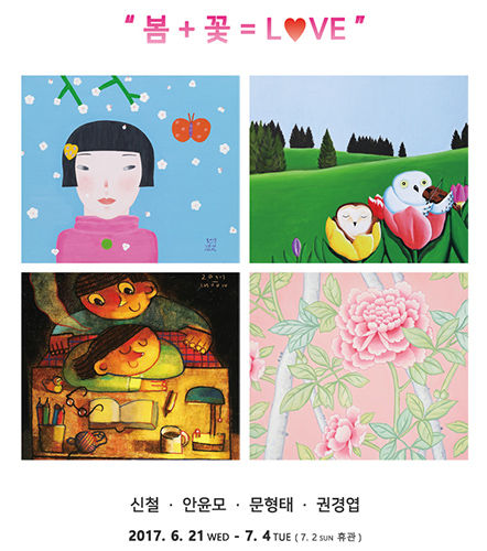 서울 종로구 갤러리일호에서는 느지막한 봄에 갤러리일호에서는 6월 21일(수)부터 7월 4일(화, 7월 2일 휴관)까지 기획초대전으로 신철, 안윤모, 문형태, 권경엽 작가의 은은한 사랑이 느껴지는 작품들로 채워진 “봄+꽃=LOVE”전을 선보인다. 봄날의 꽃처럼 작품들로 하여금 사랑의 발걸음을 불러 모으는 전시가 될 것이다.