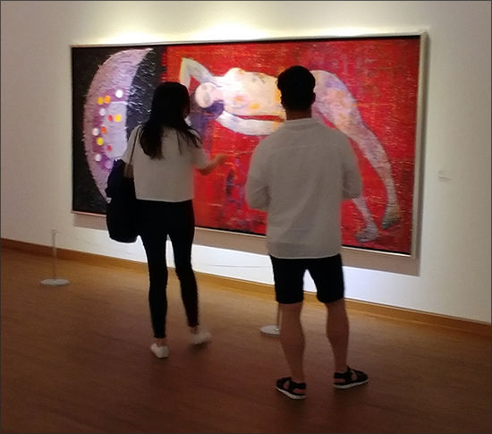 제주현대미술관 상설전시실에서는 한국의 피카소로 불리는 김흥수(1919~2014) 화백의 그림이 전시 중이다. 전시실에 들어서면 안쪽 벽면을 가득채운 "사랑을 온 세상에' 작품이 관람객의 시선을 끈다. 고깔모자에 승무를 추는 모습, 옆에는 저고리를 상징하는 모습의 인상적인 그림이 걸려있다. 그 밖에도 김흥수 화백의 다채로운 색깔이 시선을 끄는 그림들이 관람객을 발걸음을 고정시킨다.
