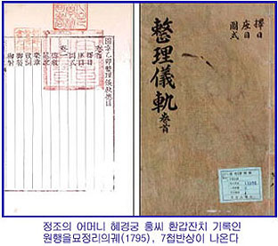 합니다. 정조임금이 화성에서 어머니 혜경궁 홍씨를 위해 환갑잔치를 벌였는데 이때의 모든 내용이 ‘원행을묘정리의궤(1795)’에 기록되어 있습니다. 이때 먹었던 잔치 음식이 ‘7첩반상’인데 반찬이 7가지가 아니라 장을 뺀 밥, 탕, 조치(찌개나 찜), 김치와 함께 양념 된 생선이나 고기를 대꼬챙이에 꿰어 불에 구운 음식인 적(炙), 젓갈, 자반 등의 3가지만 반찬으로 먹었습니다. 조선 임금의 식생활은 대부분 검소했으며, 평소 아침엔 죽을 먹었고, 가뭄이나 수해, 돌림병이 나면 임금이 물을 만 밥을 먹거나 음식을 입에 대지 않았다고 합니다. 갑오경장 이후 화려한 식생활로 바뀐 것을 조선 전체의 모습으로 보지 말아야 할 것입니다.