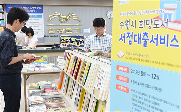 수원시도서관 관계자는 “도서관에서 대출하기 힘든 책을 쉽게 빌려볼 수 있는 희망도서 서점대출 서비스가 시민들이 책과 친숙해지는 데 도움이 될 것”이라며 “동네 서점 활성화에도 힘이 되길 바란다.”고 말했다.