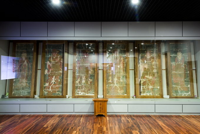 [우리문화신문=이나미 기자] 이 벽화는 부석사를 창건하고 우리나라에서 화엄종을 처음 시작한 의상대사를 모시고 있는 부석사조사당(국보 제19호) 안쪽 벽면에 사천왕과 제석천, 범천을 6폭으로 나누어 그린 그림이다. 지금은 벽화가 있는 벽면 전체를 그대로 떼어 유리상자에 담아 무량수전에 보관하고 있다.
