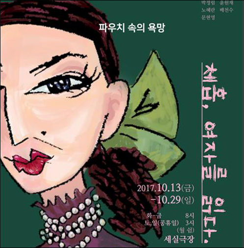 [우리문화신문=이나미 기자] 오는 2017년 10월 13일(금)부터 10월 29일(일)까지 안톤 체홉의 에로티시즘 미발표 단편을 극화한 연극 <체홉, 여자를 읽다 (부제: 파우치 속의 욕망)>가 정동 세실극장 무대에 오른다.