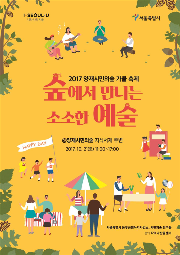 ‘2017 양재시민의숲 가을축제 ’에 대한 자세한 사항은 ‘서울의 산과 공원’ 홈페이지(http://parks.seoul.go.kr)에서 확인할 수 있다.