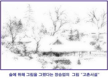 지내는 데 술이 없을 수는 없지만 그 화가 매우 크다.’ 하였다.“물론 장승업, 최북 등 조선시대의 유명한 화가들처럼 술을 마셔야 그림을 그릴 수 있는 경우도 있습니다. 하지만, 예나 지금이나 술로 인해 생기는 폐단은 큽니다. 술은 잘 마시면 좋은 음식인데 이렇게 몸과 마음을 망치니 큰일입니다. 연말이 되면서 술자리가 잦아지는데 스스로 몸가짐을 가다듬어야 할 것입니다.