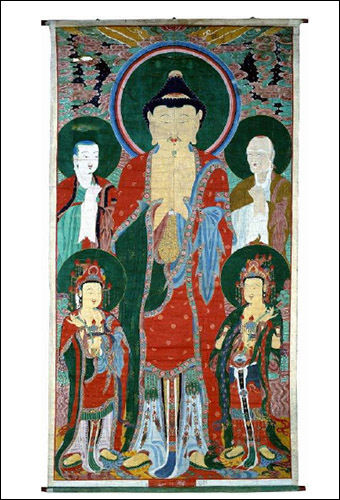 * 문수보살(文殊菩薩): 지혜를 맡아보는 보살, 보현보살(普賢菩薩): 불교의 진리와 수행의 덕을 맡음아난존자(阿難尊者)ㆍ가섭존자(迦葉尊者): 석가모니의 십대 제자 중 한 사람