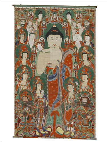 * 괘불도: 야외에서 거행되는 영산재(靈山齎), 천도재(遷度齋) 등 대규모 불교의식에 사용하기 위해 제작된 불화로, 보통 10m가 넘는 웅장한 크기와 화려한 색채, 장엄한 종교의식이 어우러져 세계적으로 유례를 보기 힘든 유ㆍ무형의 독창적인 예술세계임