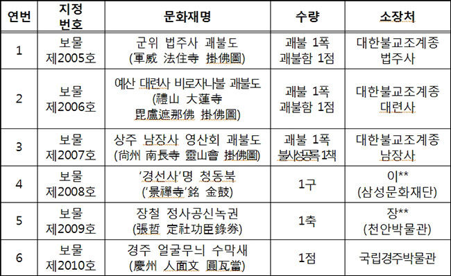이번에 지정된 괘불도 3건은 문화재청이 전국 절에 소장된 대형 불화(괘불도 掛佛圖)의 보존관리를 위해 추진하고 있는 정밀조사 사업 대상에 포함된 작품이다.