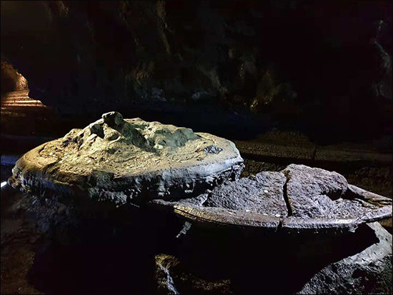 지하 궁전 같은 내부 경관은 웅장하면서 심오한 맛이 나는데, 특히 정교한 조각품 같은 돌거북은 그 모양이 꼭 제주도 같이 생겨서, 관광객들에게 인기가 있다. 그리고 동굴 천정의 용암 종유석과 벽의 용암 날개 등이 곁들여 신비로운 지하 세계를 연출하고 있다.
