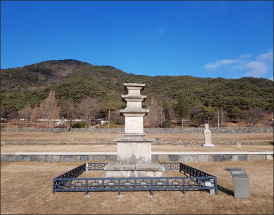 이번에 지정된 동 삼층석탑은 금당 뒤쪽에 있는 다른 2기의 석탑과 나란히 배치되어 있는데 국내에는 가람이 이렇게 배치된 예가 없다. 따라서 금당 전면에 오층석탑 1기를 조성하여 1탑 1금당 형식의 가람배치를 조성한 이후 석탑 3기를 다른 곳에서 옮겨와 뒤쪽에 추가로 배치하였을 것으로 추정한다. 금당 뒤쪽의 3기의 석탑 중 서ㆍ중앙 석탑 2기는 1963년에 보물로 지정되었으며, 동 삼층석탑은 그동안 충청남도 유형문화재로 관리해오다가 이번에 국가지정문화재 보물로 지정되는 것이다.