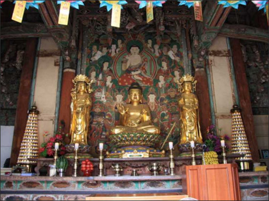 또한, 앞면과 옆면의 공포(栱包)는 풀과 꽃, 봉황머리를 조각하여 화려하게 장식한 반면, 뒷면은 장식을 두지 않고 간략히 처리하였다. 그리고 용의 머리와 꼬리를 조각한 안초공(按草栱)의 사용, 섬세하고 화려한 우물천장과 내부 닫집 등의 우수한 조각 기법은 18세기말 다포식 건축의 특징을 잘 보여준다.