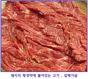 나르는 갈매기 고기가 아니라 돼지고기의 하나입니다. 돼지 몸속에는 사람처럼 횡경막이