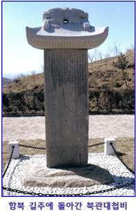 것을 반환받아 원래 자리인 함경북도 길주에 되돌려주었습니다. 이 비는 임진왜란으로