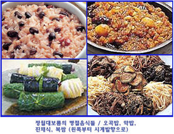 정월 대보름날의 먹을거리는 찹쌀을 밤, 대추, 꿀, 기름, 간장들을 섞어서 함께 찐 후