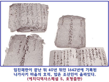 했다고 합니다.일본으로 끌려간 조선인 포로들의 삶은 당시의 호적대장을 통해 짐작해볼 수 있습니다. 그들은 일부 도자기 기술을 가진 사람들을 빼고는 대부분 비참하게 살았고, 결국은 다시 고국 땅을 밟지 못했습니다. 400년 전 그들은 메이지 유신 이후 강제로 창씨개명을 당하기까지 했지만 자신의 정체성을 잊지 않으려 노력했는데 조선인 집단 주거지가 있었던 나에시로가와에 단군을 모신 ‘다마야마 신사’를 세울 정도였습니다.