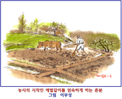 오늘은 춘분으로 해의 중심이 춘분점 위에 왔을 때인데 낮과 밤의 길이가 같다고