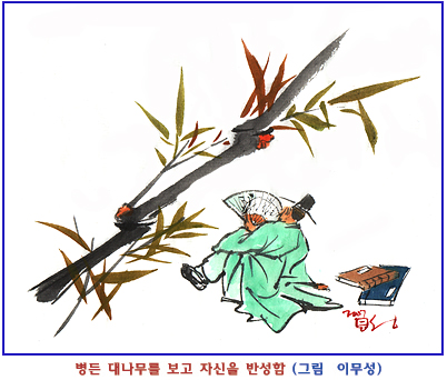 나무를 보며, 이 글을 쓰는 것이 어찌 까닭이 없겠는가?”위 글은 조선 선조 때 진주 지역에서 남명학파가 뿌리를 내리게 하는데 중요한 역할을 한 인물인 하수일(河受一)의 ‘송정집(松亭集)’에 나오는 ‘병든 대나무를 보고(病竹說)’란 글의 일부입니다. 기개의 상징인 대나무가 병들어 제대로 자라지 못하는 것을 보고 사람도 저 대나무와 같이 욕심에 병이 들면 본래의 착한 본성을 잃어버린다는 교훈의 글입니다. 주위의 사물을 볼 때에 그저 단순히 바라볼 일이 아니라 그 사물을 관찰하여 자신을 반성하는 삶을 산다면 바람직할 것입니다.