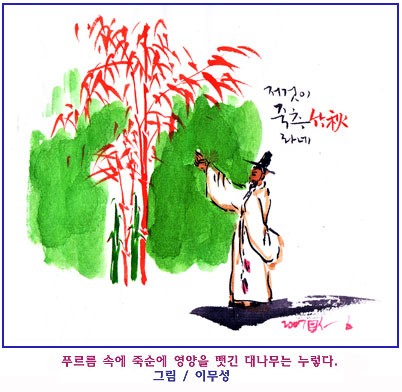 시기에 식용으로 쓰입니다. 온 천지가 푸르름으로 뒤덮였지만 대나무만큼은 푸른빛을 잃고 누렇게 변합니다. 이는 새롭게 탄생하는 죽순에 자기의 영양분을 공급해주었기 때문이지요. 마치 어미가 자기 몸을 돌보지 않고 어린 자식에게 정성을 다하여 키우는 것과 같습니다. 봄의 누래진 대나무를 가리켜 '죽추(竹秋)‘ 곧 ‘대나무 가을’이라고 합니다.