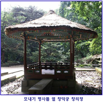 되새겨 왔다고 합니다.모내기 행사에 직접 참여하고픈 시민은 창덕궁관리소(☎ 02-3676-3408)로 지원하면 그 중 5명을 선정하여 참여케 할 예정이며, 당일 이른 10시에 옥류천 특별관람을 하면 이 행사를 참관할 수 있습니다. 행사에는 공연장에서나 들을 수 있는 농요와 함께 모내기를 체험해 볼 수 있는 흔치 않은 기회가 될 것입니다.