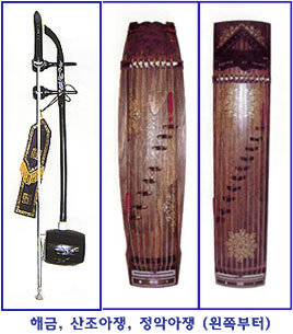 아버지뿐만이 아니라 많은 사람이 그러합니다. 아쟁과 해금은 똑같이 활로 줄을 문질러 연주하는 찰현악기(擦絃樂器)이지만, 아쟁은 가야금처럼 가로 뉘어서 연주하며, 8~10줄(예전엔 7줄)을 가지고 있고, 해금은 세로로 세워서 연주하고 2줄 밖에 없는 악기입니다. 또 아쟁은 서양의 첼로처럼 장중한 저음이 나지만, 해금은 바이올린처럼 높고 고운 소리를 냅니다. 최근 해금은 아름다운 창작국악으로 널리 연주되어 인기가 높지요, 하지만 아쟁은 서양 관현악에서 첼로가 빠질 수 없듯이 국악 관현악에서는 저음으로 든든하게 받쳐주는 중요한 악기입니다.