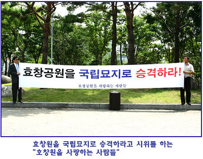 또 기념관 후문에서는 효창원을 사랑하는 사람들이란 모임에서 효창원을 국립묘지로 승격해야 한다는 작은 시위가 있었습니다. 현재 백범 선생님을 비롯하여 임시정부 요인 7분이 묻힌 묘역이 국립묘지가 되지 못하고 있습니다. 헌법에 대한민국은 임시정부를 잇는다고 했지만 이것이 진정 임시정부의 법통을 잇는 것인지 묻는 것입니다.