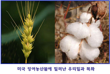 오늘의 우리를 있게 해준 것인지도 모릅니다.하지만, 그 뒤꼍엔 우리의 오랜 문화가 흔적도 없이 사라지는 비운도 따랐습니다. 미국의 밀가루가 밀려들어 오자 오랫동안 재배되어 오던 우리밀은 흔적도 없이 자취를 감췄습니다. 우리 체질과 맞지 않는 것은 물론 농약에 범벅이 된 서양밀에 밀려난 것이지요. 그뿐만이 아닙니다. 미국에서 밀려든 면섬유에 우리의 목화 재배도 흔적도 없이 사라졌습니다. 우리나라는 고조선 때부터 목화를 심어 당시만 해도 동아시아 최고의 직조술을 가졌었다고 합니다.