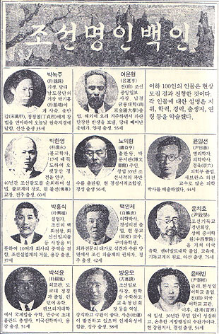 일본잡지<모던일본> “조선판 1939년”에는 조선의 각계 인사 100명 선정을 현상