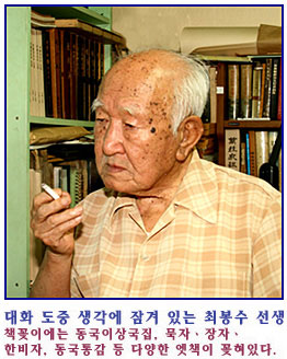 일부입니다. 선생님은 아직도 정정한 채 돋보기도 없이 작은 글자도 읽으시고, 보청기도 쓰시지 않습니다. 늘 원고지에 글을 쓰시고, 아이들에게 공부도 가르치십니다. “찾아오는 이도 없고, 즐길 것도 없으니 그저 되는 소리, 안 되는 소리로 글만 쓰고 있다.”라고 말씀하십니다. 선생님은 일본서기의 역사가 2600년인데 일제가 그에 맞추려고 단군을 신화로 거짓 꾸민 것을 아직도 고치지 못하고 있다며 개탄하십니다.