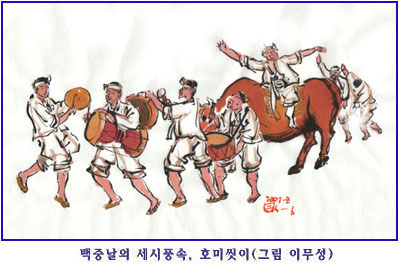 '호미씻이'가 있는데 그 해에 농사가 가장 잘 된 집의 머슴을 뽑아 얼굴에 검정