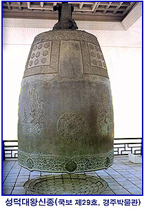 에밀레종 곧 성덕대왕신종이 있습니다. 무게가 무려 22톤이나 되는 에밀레종의