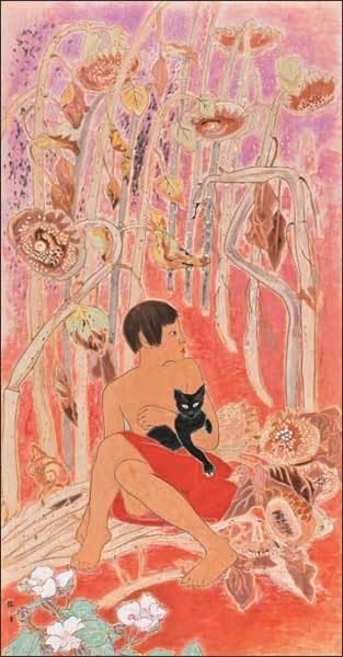 출품작을 보면 배경과 인물의 배치가 대담한 구성을 취하고 있는데, 해바라기들은 햇빛을 받지 못한 듯 큰 꽃을 지탱하기 버거운 모양으로 맥없이 고개를 숙이고 있고, 검은 고양이를 안고 있는 소녀는 놀라 불안하고 긴장된 얼굴로 옆을 응시한다. 이와 함께 보랏빛과 붉은빛이 감도는 배경이 전반적으로 신비로운 긴장감을 불러일으키고 있다. 경매 예상가는 9억~12억 원이다.