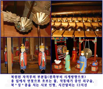 있었습니다만 저는 그 기자와 달리 그 복원에 크게 손뼉을 칩니다.장영실이 만든 자격루는 어쩌면 역사상 가장 위대한 과학발명품인지도 모릅니다. 그런데 지금까지의 복원품들은 자격루의 핵심인 자동시보장치가 빠진 껍데기였지요. 그래서 올바른 자격루의 복원은 문화계, 과학계 숙원사업이었습니다. 이에 한 공무원이 중심이 되고 과학자, 장인 30여 명이 1년을 함께하여 2005년 12월 복원 완료하고 그동안 이를 점검하고 확인해오다 이제야 공개한 것입니다. 그날 저는 공무원이 안내해 자격루 안에서 구슬이 떨어지는 것을 확인하며 많은 사진을 찍었습니다. 자신이 없으면 어떻게 그럴 수 있었을까요? 그 뜻과 과정이 잘못되지 않았다면 약간의 문제는 지적하는 정도로 넘어가야 할 것입니다.
