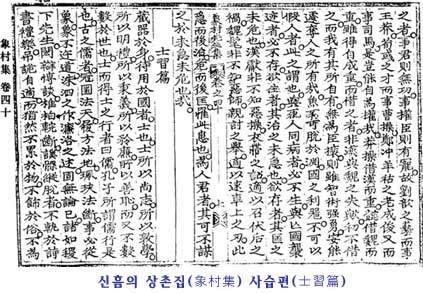 위 글은 조선 중기의 문신인 신흠의 상촌집(象村集) 사습편(士習篇)에 나오는 내용입니다. 신흠은 뛰어난 문장력으로 대명외교문서의 제작, 시문의 정리, 각종 의례문서 제작에 참여한 사람이지요. 신흠은 오늘의 선비가 권세, 이익, 명예, 겉치레, 경쟁 등만을 추구하는 타락한 형태를 보이는데 이런 선비는 결국 온 세상에 화를 미치게 한다고 말합니다. 또 신흠은 백성이 추하게 여기는 사람을 뽑아 국가의 대계를 의논하는 것을 한탄합니다. 대통령 선거날에 생각할만한 글귀입니다.