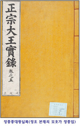 참고 : 정조의 본래 묘호는 정종(正宗)이었으므로 그 실록의 본래 이름도 《정종문성무열성인장효대왕실록(正宗文成武烈聖仁莊孝大王實錄)》 입니다.