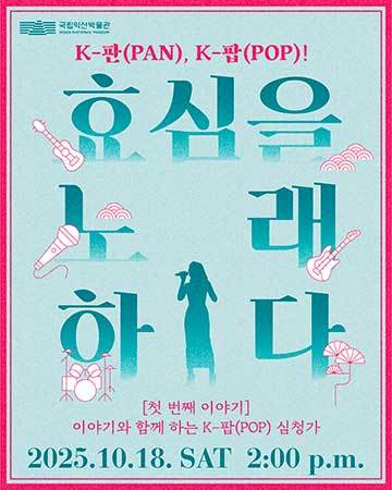 [우리문화신문=정석현 기자]  국립익산박물관(관장 김울림)은 오는 10월 18일(토) 낮 2시, 전통 판소리와 현대 대중음악을 결합한 새로운 형식의 국악공연 ‘이야기와 함께하는 국악공연’ <K-판(PAN), K-팝(POP)!>을 연다. 두 차례 진행되는 시리즈 공연의 첫 번째 무대로, 전통 이야기의 감동을 현대적 음악 언어로 재해석한 서사형 음악극이다.