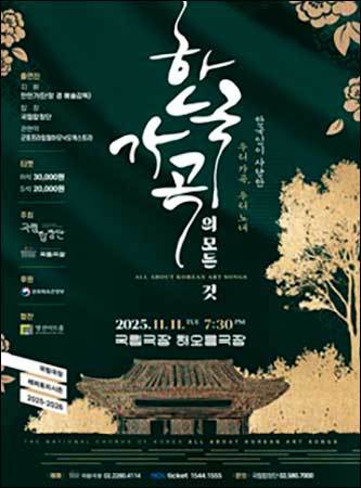 [우리문화신문=이한영 기자] 오는 11월 11일 저녁 7시 30분 서울 장충동 국립극장 ‘해오름극장’에서는 국립합창단의 <한국 가곡의 모든 것> 공연이 열린다.