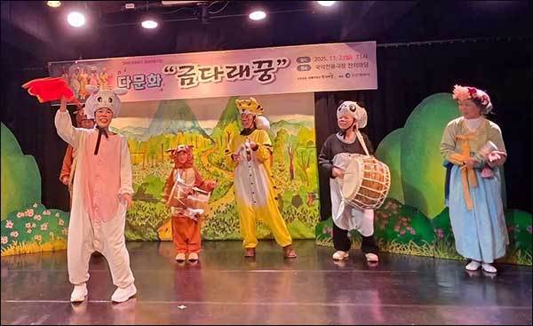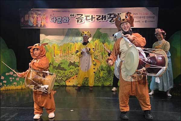 [우리문화신문=김영조 기자] 전통연희단 잔치마당(대표 서광일)이 다문화 가족과 함께 만든 국악극 〈금다래꿍〉 발표회가 지난 11월 2일 부평 국악전용극장 잔치마당에서 성황리에 열렸다. 이번 발표회는 인천광역시 「2025년 문화공간 조성 지원」 사업의 하나로 추진된 다문화 가족어린이 국악극 교육 프로그램의 결실로, 교육에 참여한 다문화가족과 그 가족들이 한자리에 모여 따뜻하고 감동적인 무대를 완성했다.