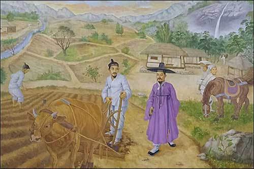 김육의 삶 가운데 가장 눈에 띄는 부분은 양반이었음에도 1613년부터 1623년 인조반정 직전까지 경기도 가평의 잠곡에서 식구들과 함께 농사를 지으며 백성들의 밑바닥 삶을 체험하게 됩니다. 그렇게 자그마치 10년 동안을 주경야독하던 생활을 통해 백성들의 어려움을 몸소 체험하였는데 이를 통해 효종을 설득하여 백성을 위해 대동법을 시행하도록 한 사람입니다.