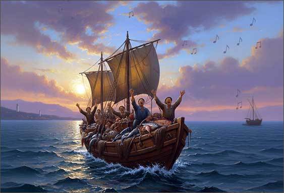이처럼 <잦은 배따라기>는 파선한 뱃사공의 비참한 정경이라든가, 사공이 된 신세를 한탄하는 것과는 달리, 풍어(豊漁)에 북을 울리고 돌아오는 기쁨을 노래한다. 그래서 한탄조의 <배따라기>에 견줘 <잦은 배따라기>는 흥겹고, 신명 나는 가락과 장단으로 짜여 있어서 뱃사공들의 노래답게 널리 불리고 있다.