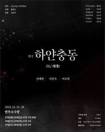 일본 으뜸 추리소설 작가이자 재일교포 3세인 오승호 작가의 동명 추리소설을 원작으로 하는 ‘하얀 충동’은 인간 내면의 설명 불가능한 충동을 통해 범죄에 대한 사회적 시선과 포용적 한계를 예리하게 파고든다. 최근 사회적으로 납득되기 어려운 범죄 발생률이 높아지는 가운데 연극 ‘하얀 충동’은 ‘이해할 수 없는 존재’의 사회적 수용이 어디까지 가능한가에 대한 질문을 관객에게 던지며 이를 연극적 시선으로 풀어낸다.