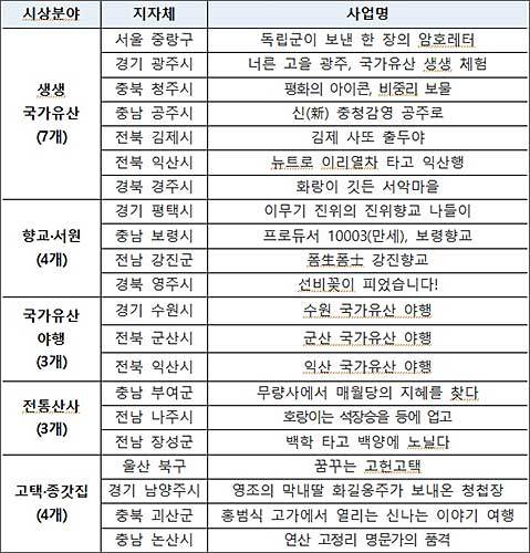 [우리문화신문=한성훈 기자] 국가유산청(청장 허민)은 12월 18일 낮 2시 대전 전통나래관(대전 동구)에서 「2025 우리고장 국가유산 활용 우수사업」으로 뽑힌 21건에 대해 시상한다.
